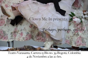 nos vamos a Colombia! October 28, 2011March 6, 2017 Perhaps, perhaps, quizás… dentro del Clown Encuentro 2011. La cita es el Viernes 4 de Noviembre en el Teatro Varasanta a las 20 hrs. para mayores informes, http://www.clownencuentro.com Share this: Click to share on X (Opens in new window) X Click to share on Facebook (Opens in new window) Facebook Like Loading... Related