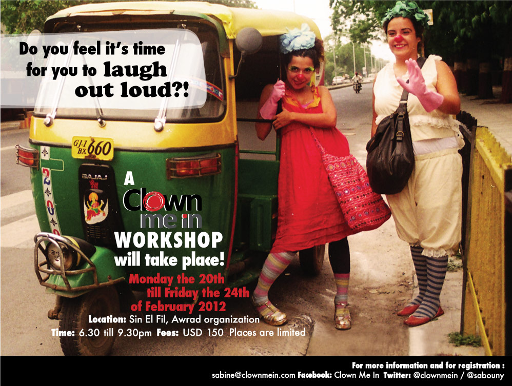 Then Clown Me In is inviting you to its new workshop between the 20th and 24th of February 2012 at Awrad Organisation – Sin el Fil- Beirut – Lebanon