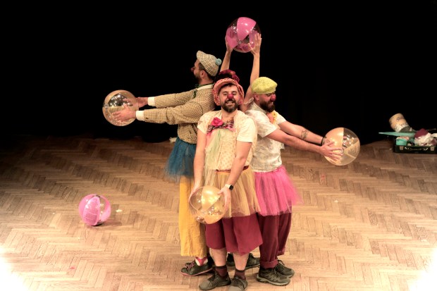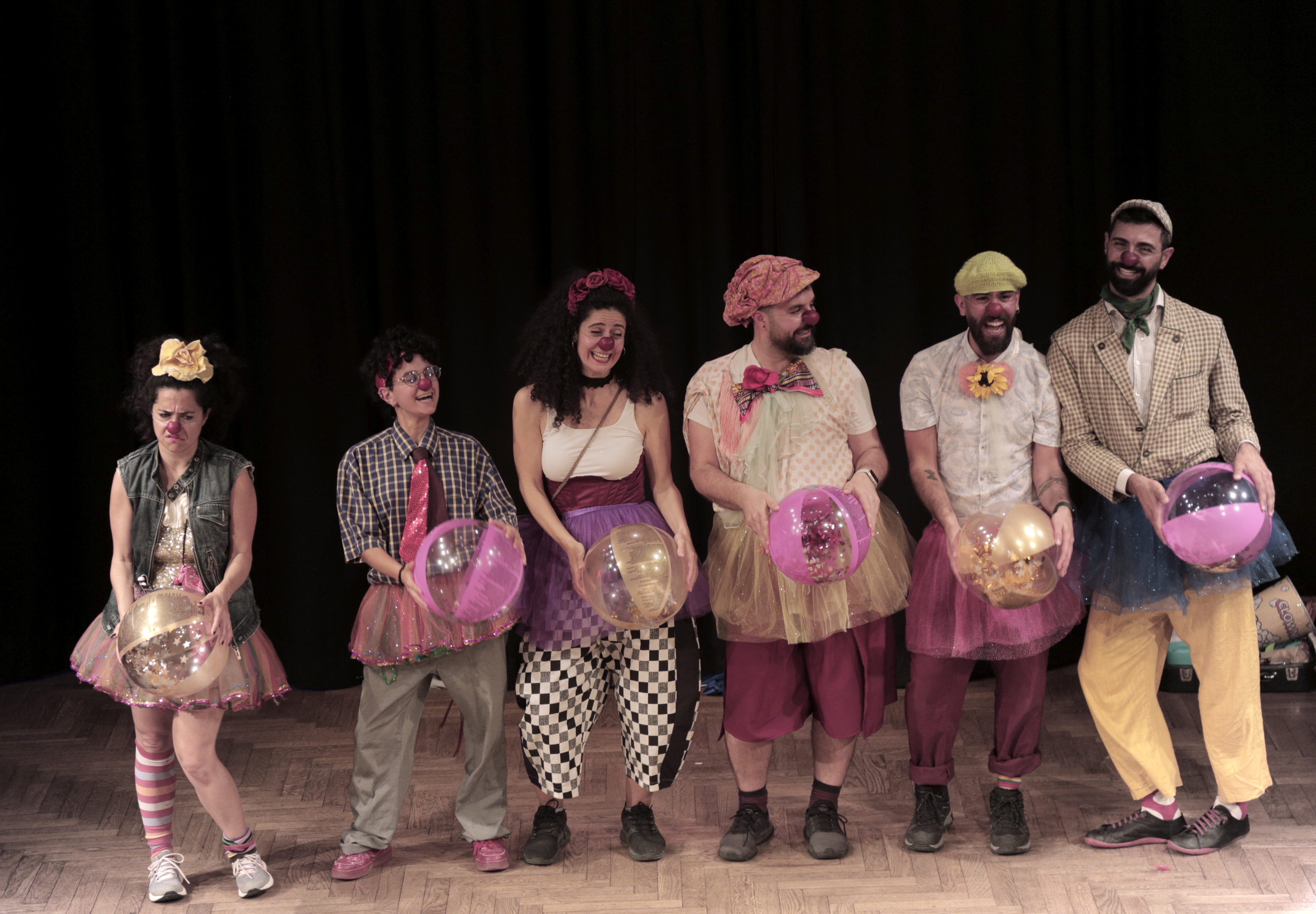 The performance is composed of chorus clown scenes and solo scenes. The chorus invites the audience to play with the absurdity of life and death and the struggles of daily relationships. The solo scenes tackle different subjects and invite audiences to laugh with every move.