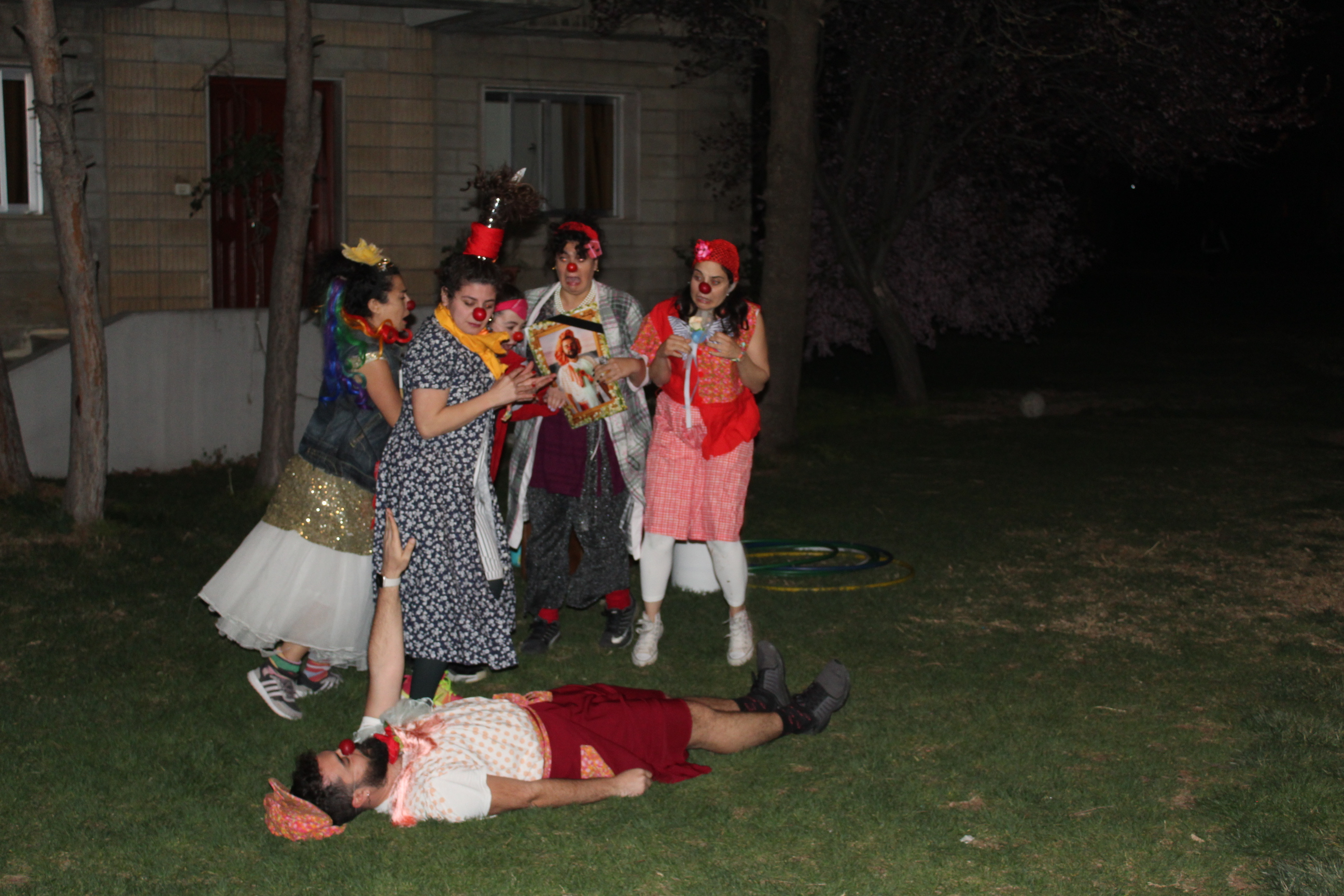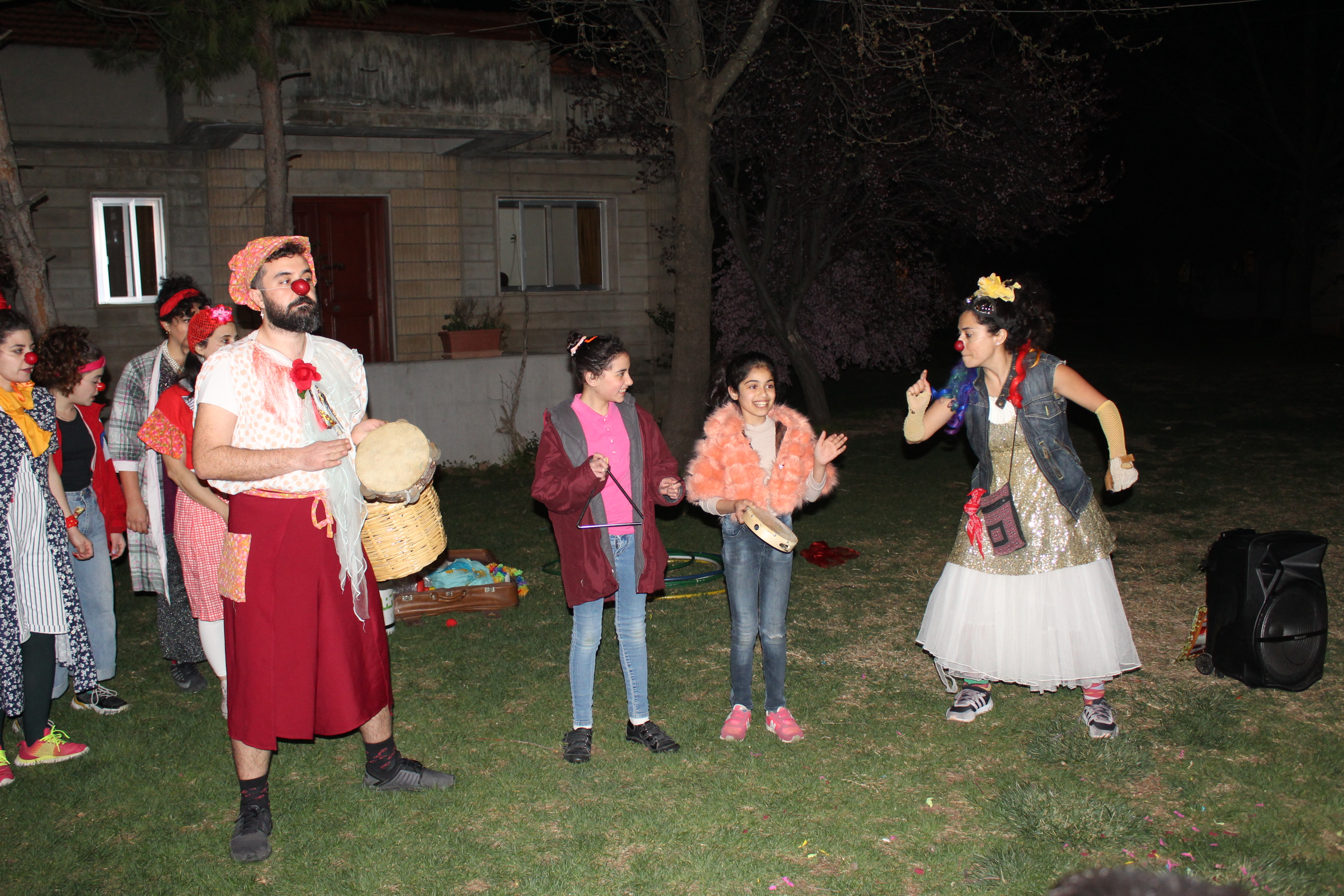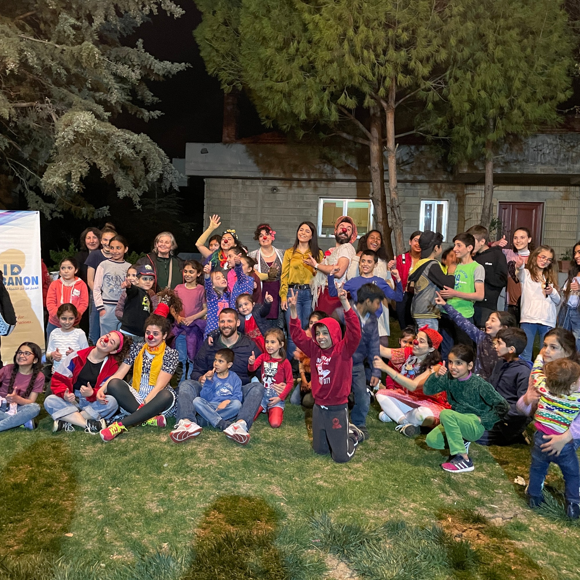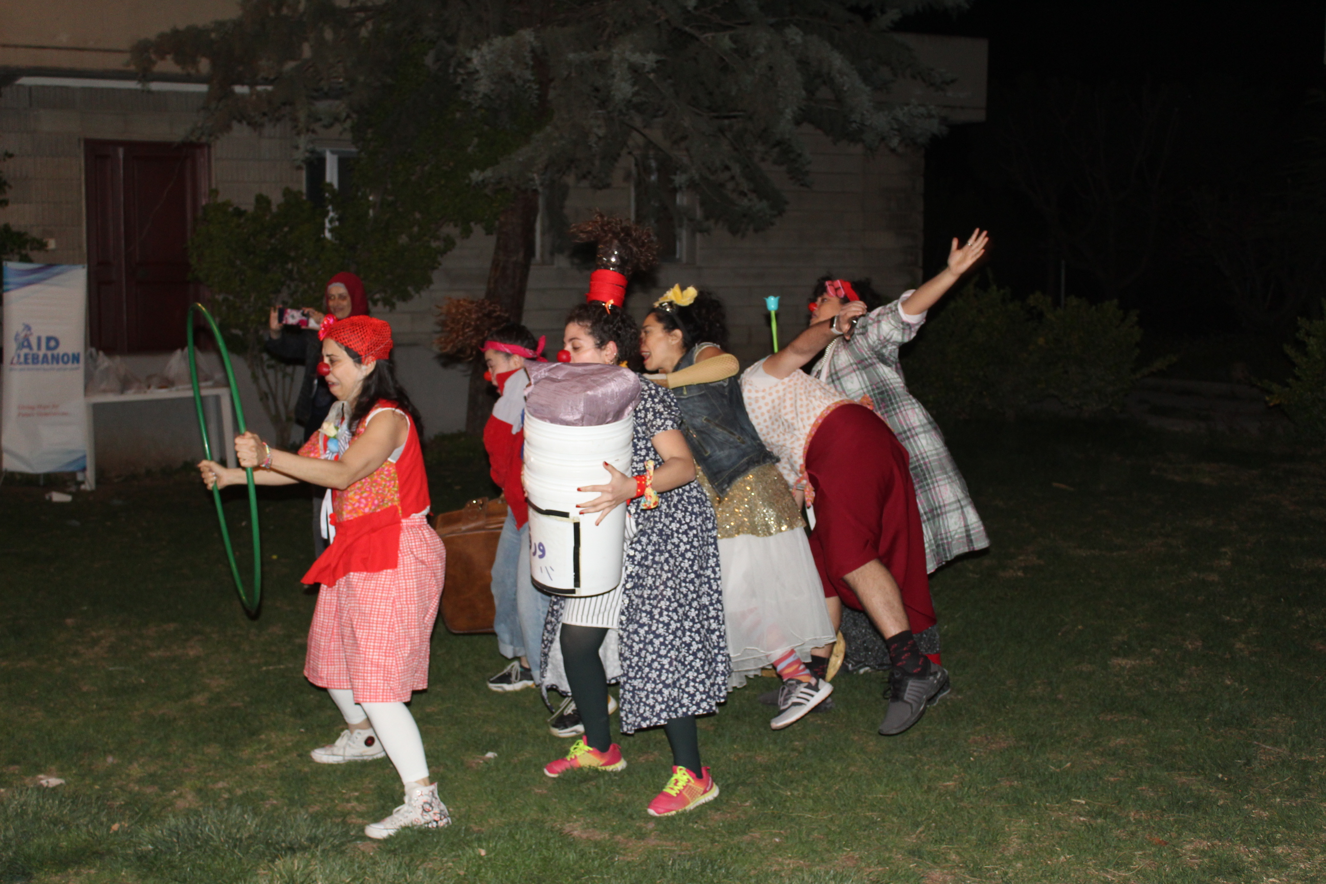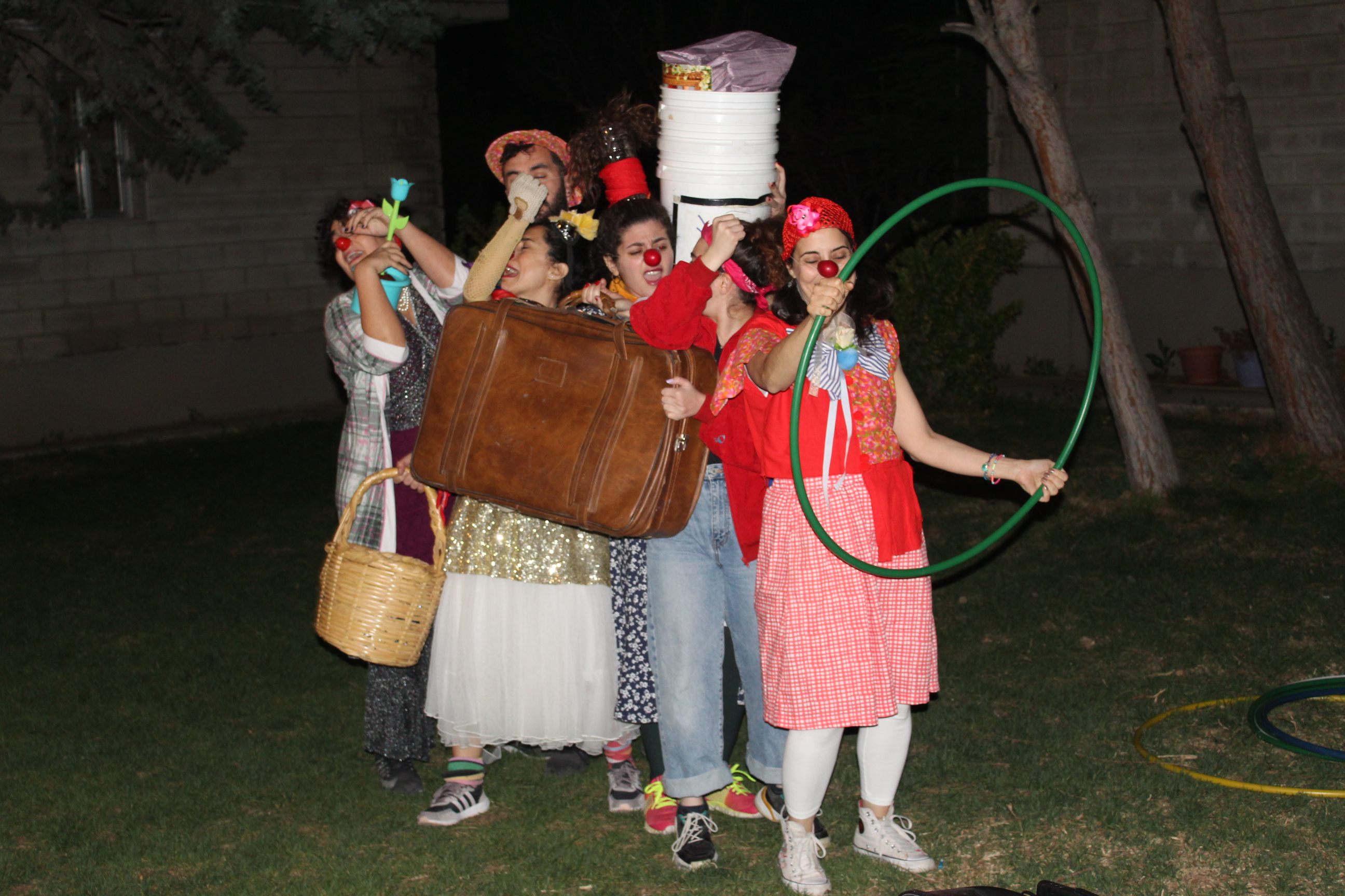 The Clown Me In team was invited to perform a surprise clown show for the SOS kids in Ksarnaba, Bekaa. It was right after the iftar dinner. The show was an absolute success and a great immersive experience with the kids. The evening started with the clowns merging with the crowd, all their props on their backs, following the one clown reading a folded map, trying to find a place to park and start the show. That was the interactive part of the show with the kids. After an exhausting trip of scouting around the crowd, the clowns were called to start the show, hopped on their imaginary bus and that’s how this journey began.